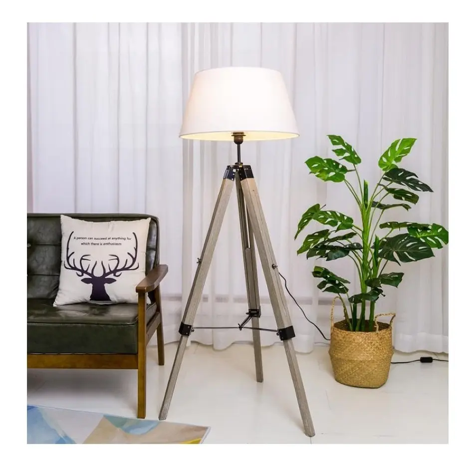 Luminaria Lampara De Pie Industrial Blanco Pantalla Tela Blanco