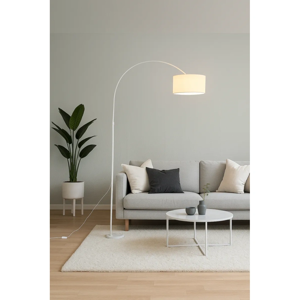 Lámpara De Pie Curva Pantalla Tela Base De Mármol Regulable