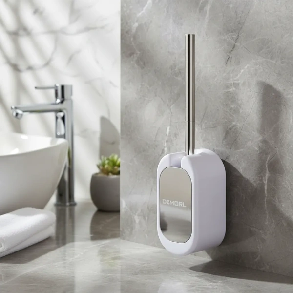 Moderno Cepillo de Inodoro con Cerdas de Silicona con adhesivo Diseño de apertura y cierre automáticos: Este diseño es la