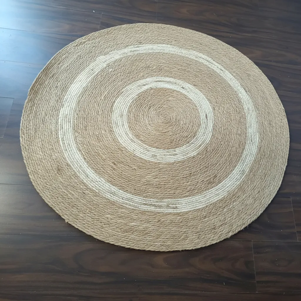 Alfombra Artesanal Yute Redonda Tejida 120cm