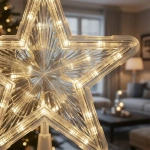 El cable transparente permite que la luz brille diáfana, integrándose perfectamente con tu decoración sin distracciones. Con una estrella de 22 cm como su centro, estas luces no solo iluminan, sino que también se convierten en un atractivo visual que captará la atención de todos tus invitados.