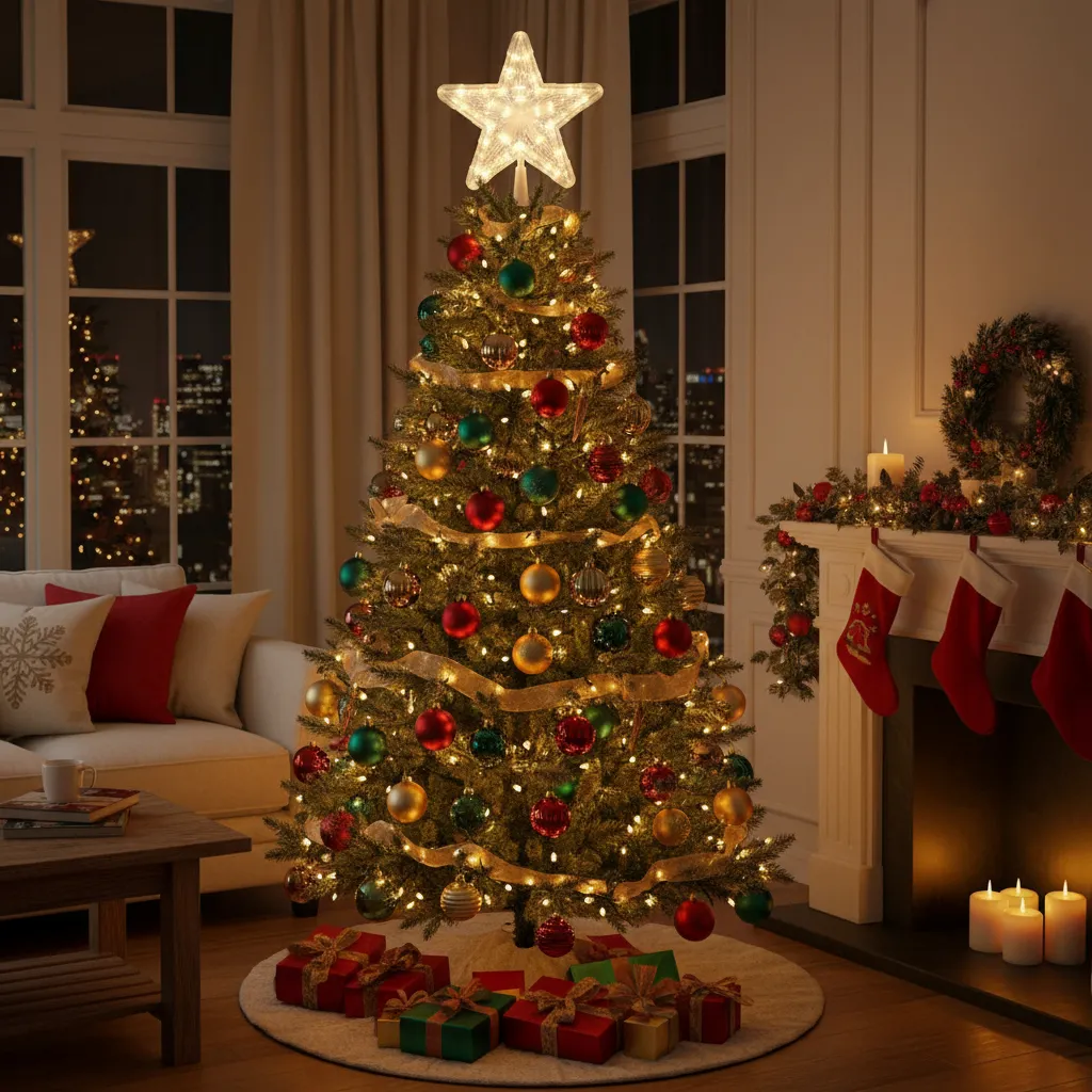 El diseño elegante y contemporáneo de estas luces navideñas las convierte en un elemento imprescindible para quienes desean crear un ambiente acogedor y festivo en sus hogares. Dale vida a tus tradiciones y celebra cada momento con el resplandor único que solo las Luces De Navidad Puntero Árbol Estrella pueden ofrecer.