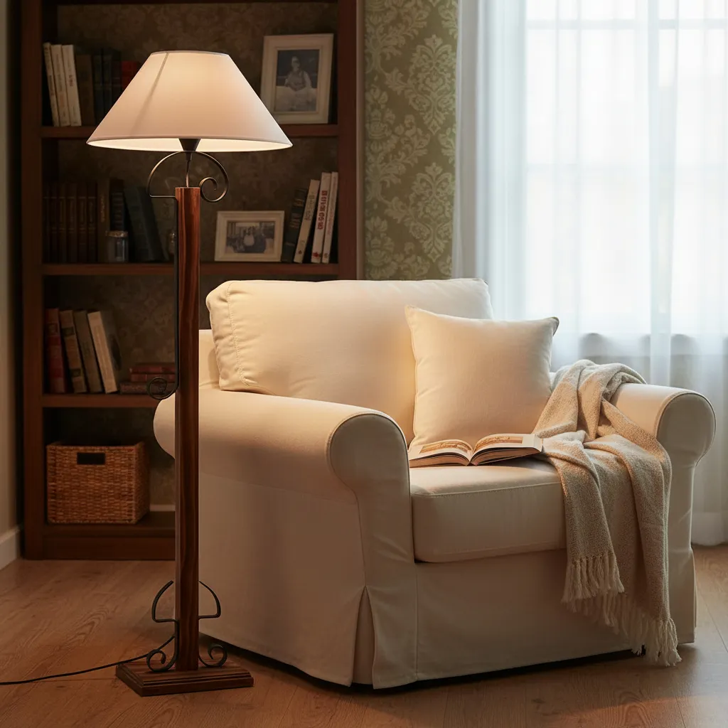 Portátil De Mesa Veladora En Madera Hierro Pantalla De Tela