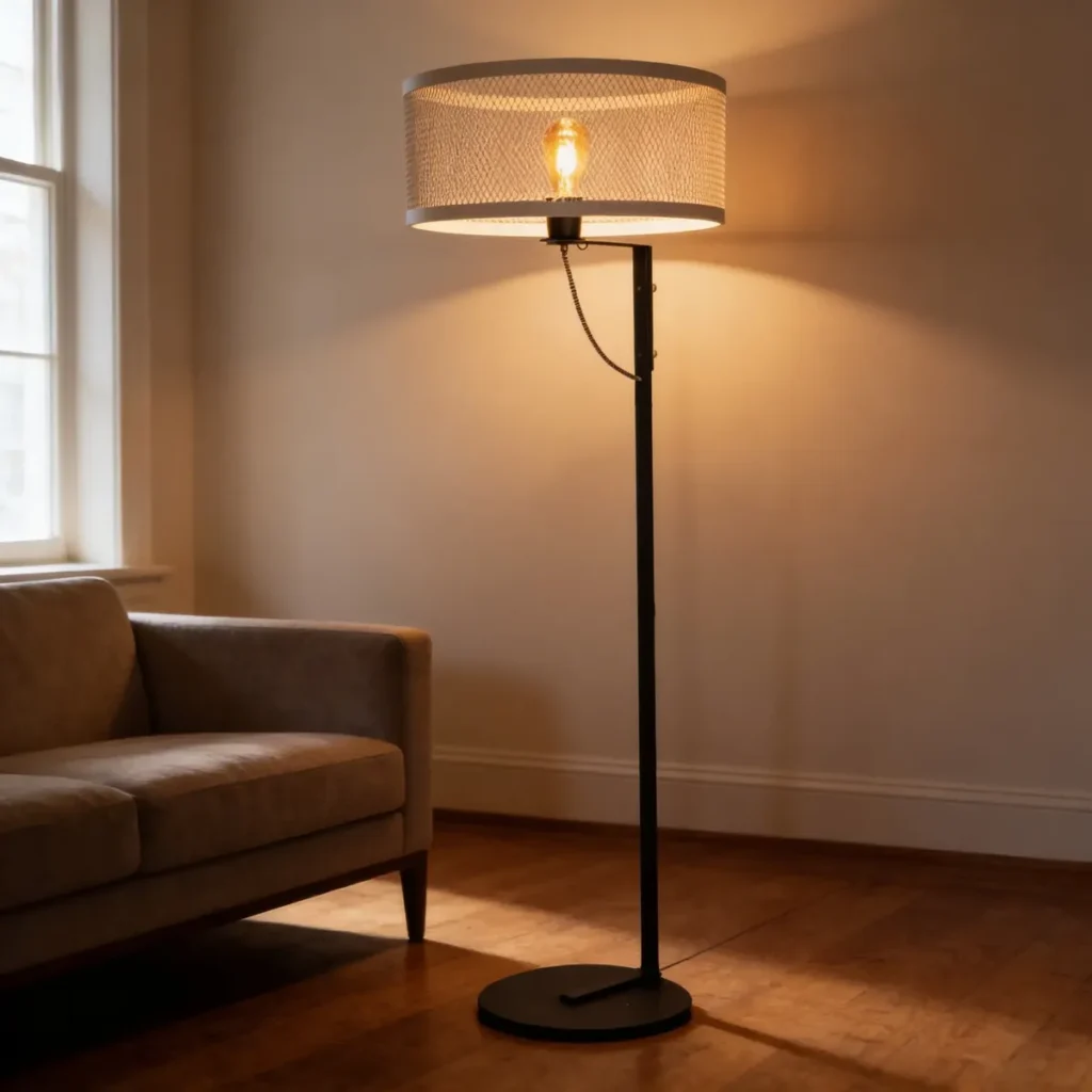Portátil Lampara De Pie Industrial Con Pantalla De Malla Negro