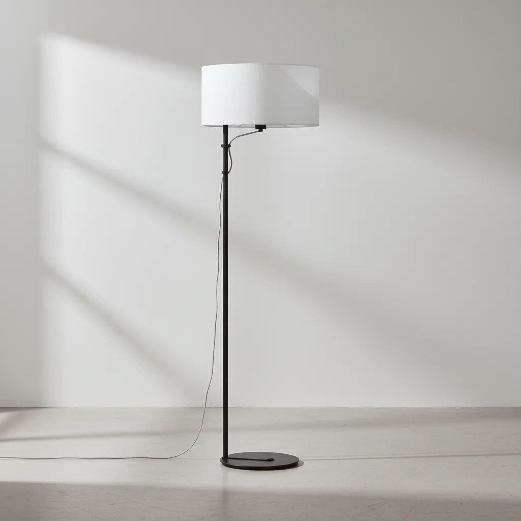 Luminaria Lampara De Pie Industrial Negro Pantalla Tela Blanco