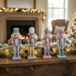 Añade un toque de encanto a tu decoración navideña con el Adorno Navideño de 4 Soldados Cascanueces de Madera, diseñado por Trend & Home. Con una altura de 13 cm, estos alegres cascanueces en colores pasteles son perfectos para integrar en cualquier ambiente festivo. Su diseño encantador y tradicional evoca la magia de las festividades, creando un ambiente cálido y acogedor en tu hogar.