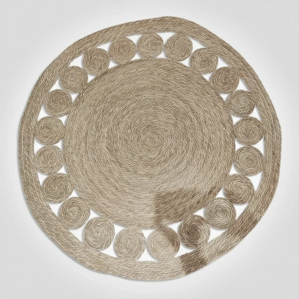 Alfombra Artesanal Yute Redonda Tejida 120cm Beige con círculos