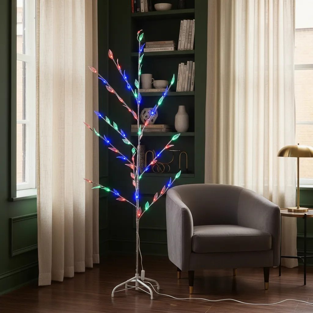 Equipado con luces LED multicolores, este árbol iluminará tus celebraciones con un brillo festivo. Su estructura de acrílico y metal garantiza durabilidad, mientras que su diseño plegable facilita su almacenamiento. Disfruta de la comodidad de un árbol que no requiere montaje complicado, permitiéndote dedicar más tiempo a lo que realmente importa: compartir momentos especiales con tus seres queridos.