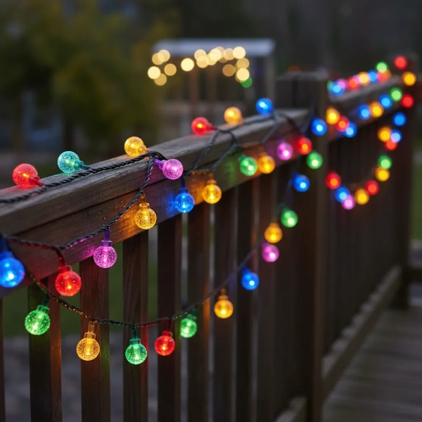 Guirnalda Bolitas Solar 50 Luces Multicolor 5m Cable Negro
