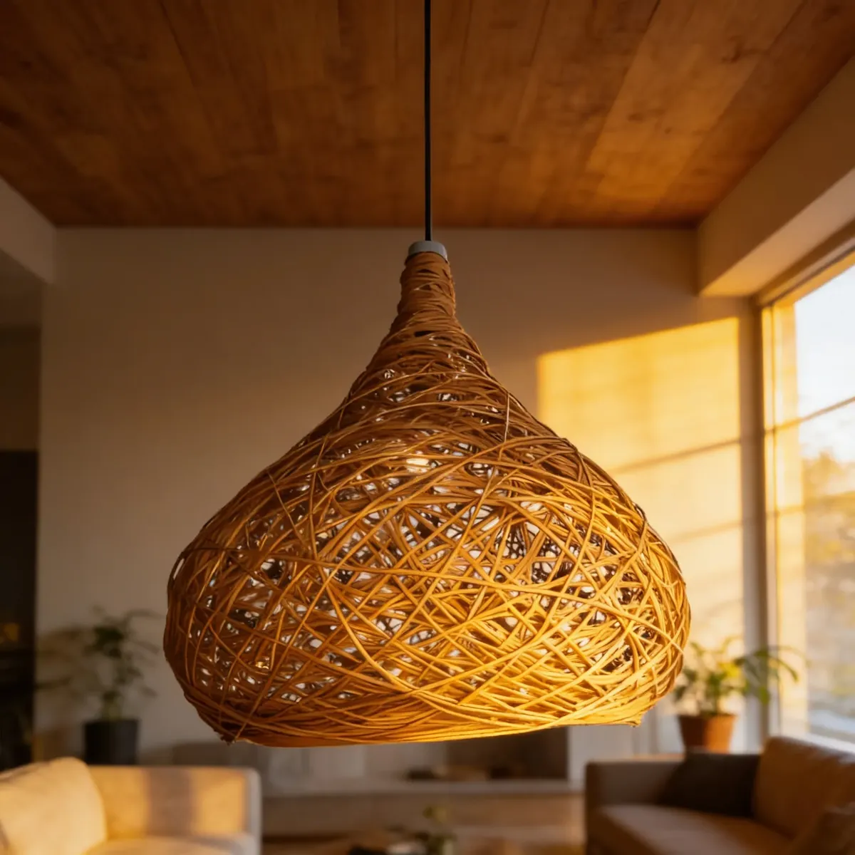 Colgante Lampara Fibra Natural 21cm Moderno Y Artesanal