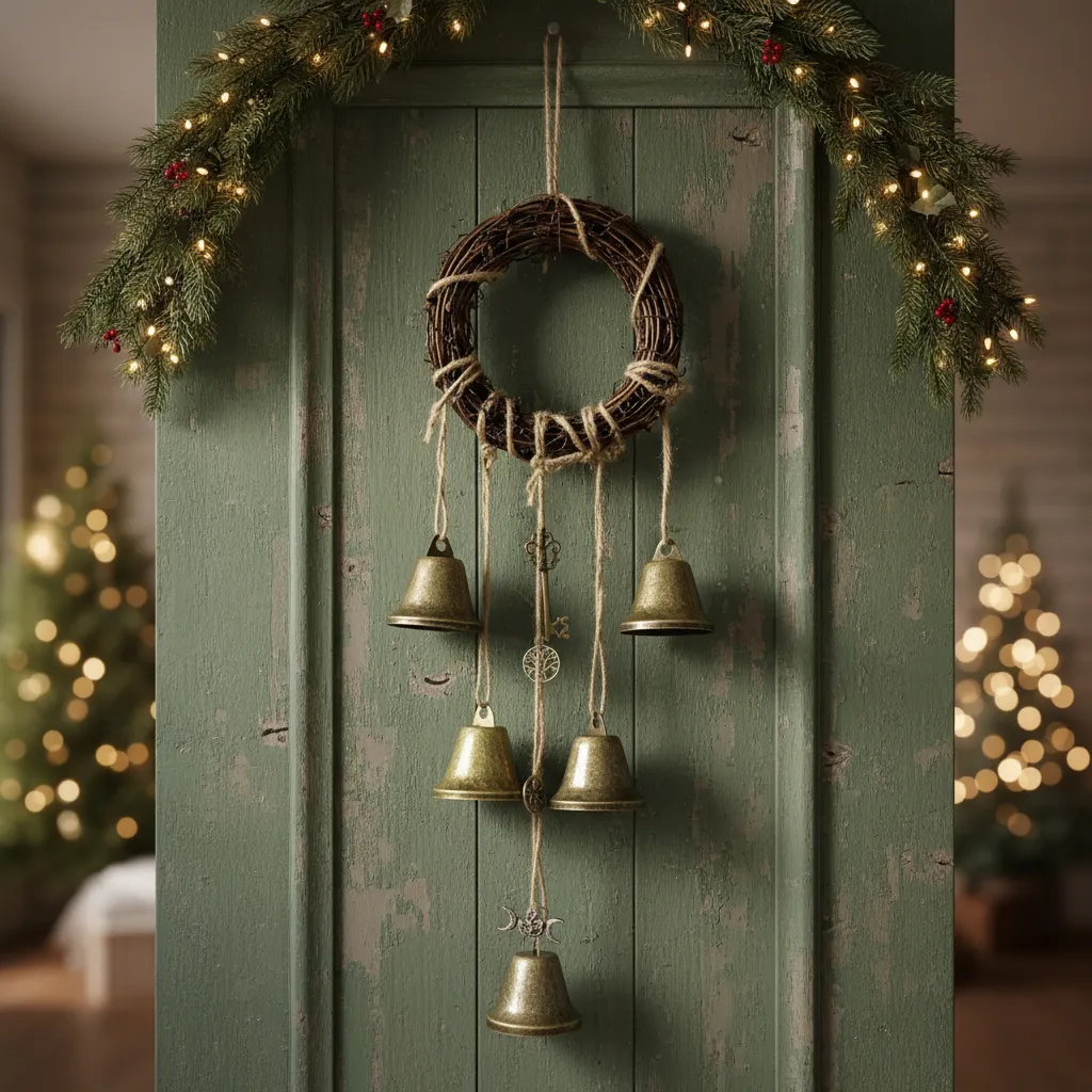 Corona Adorno De La Fortuna Navideño Para Puerta Campanas