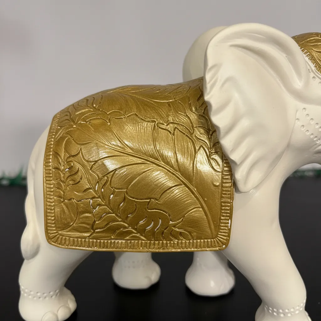 Descubre la elegancia y el simbolismo de la estatuilla de elefante decorativo de Trend & Home. Este adorno, elaborado en cerámica, no solo embellece cualquier espacio, sino que también aporta un toque de fortuna y protección según la filosofía Feng Shui. Con unas dimensiones de 24 cm de largo, 10 cm de ancho y 18 cm de alto, se adapta perfectamente a estanterías, mesas o rincones especiales de tu hogar. El diseño meticuloso de esta escultura resalta la majestuosidad del elefante, un símbolo de sabiduría y fuerza. Su acabado en cerámica le confiere un brillo sutil que complementa cualquier estilo decorativo, desde lo contemporáneo hasta lo clásico. Ideal para quienes buscan no solo un adorno, sino un elemento que inspire tranquilidad y prosperidad en su entorno.