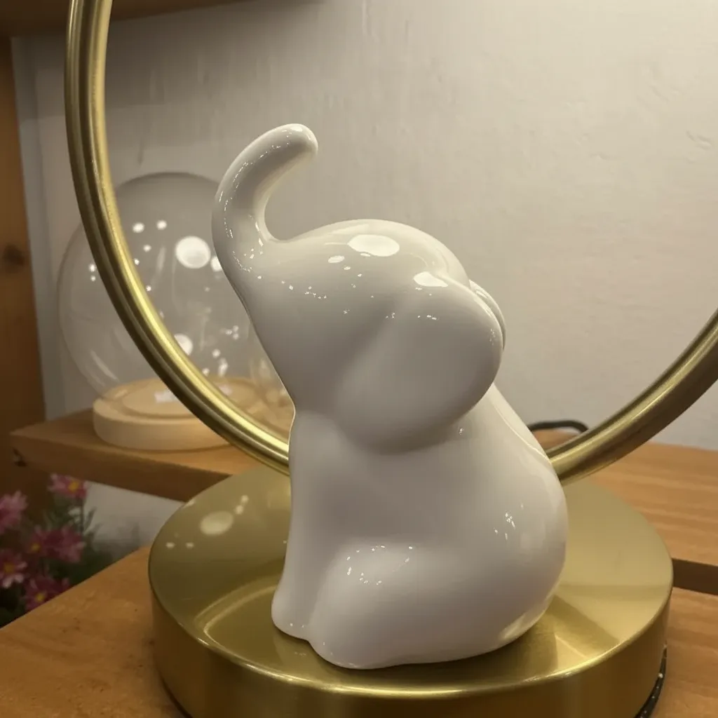 Elefante Decorativo Estatuilla En Cerámica Pintada 6×10.5cm Blanco