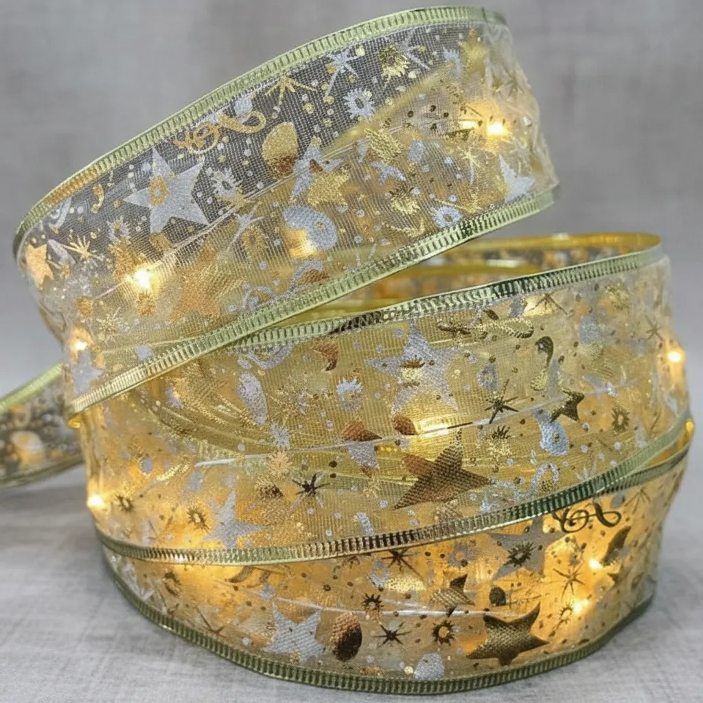 Inicio Navidad Flores y Cintas Guia Guirnalda Cinta Luces Led Navidad Decoraciones Navideña Dorado