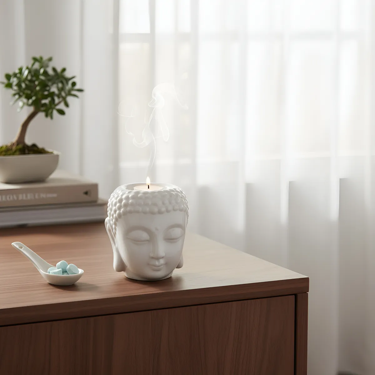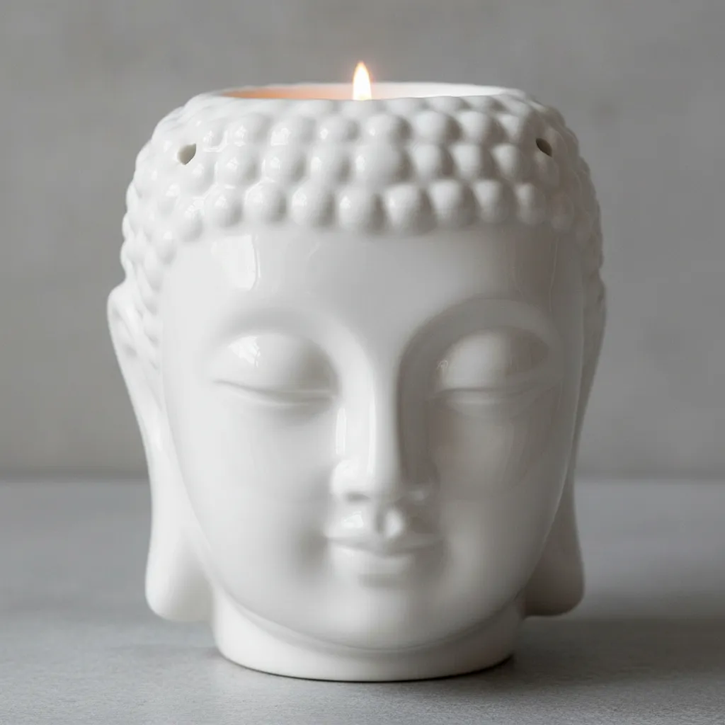 Hornito De Cerámica Porta Velas O Aceites Cara De Buda Relax
