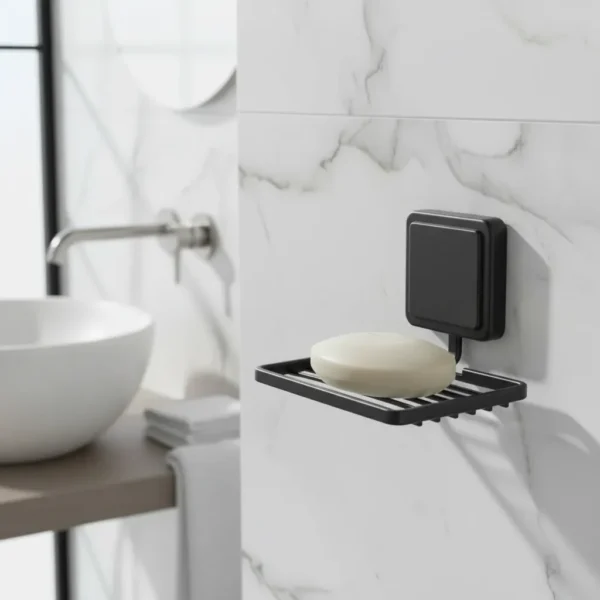 Jabonera Aerea Moderna Adhesivo Pared Baño Ducha Acero Negro