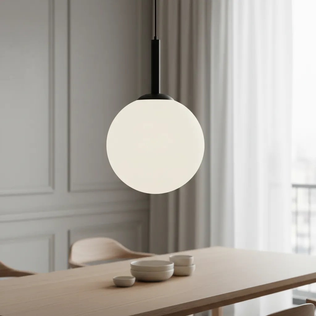 Lámpara Colgante Moderna Esfera Vidrio Minimalista Nordico Negro
