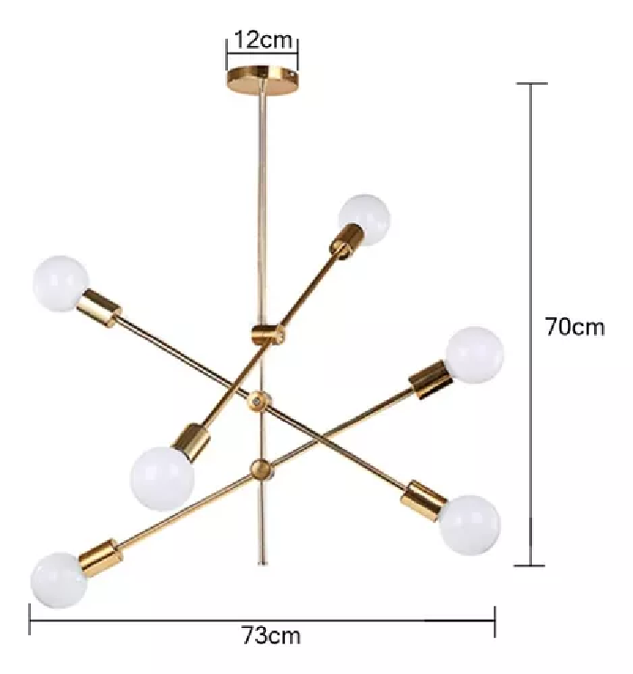 Esta lámpara colgante araña moderna vintage de 6 luces es perfecta para iluminar tus espacios interiores con estilo y elegancia. Con un formato colgante y capacidad para 6 focos LED, brinda una iluminación potente y eficiente. Fabricada en metal de alta calidad, garantiza durabilidad y resistencia en su montaje en el techo.