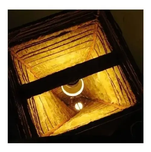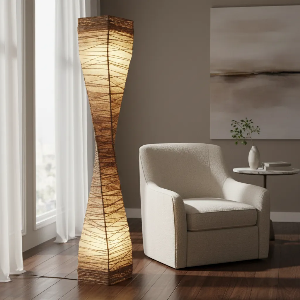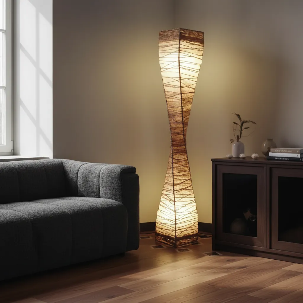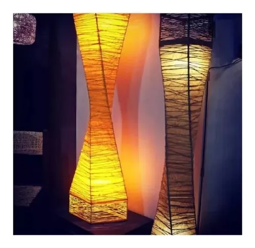 Lampara Pie Fibra Natural Artesanal Torneada Doble Luz 150cm