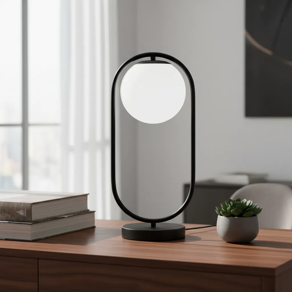Lampara Portátil Mesa De Luz Aluminio Pantalla Globo Vidrio Negro Blanco