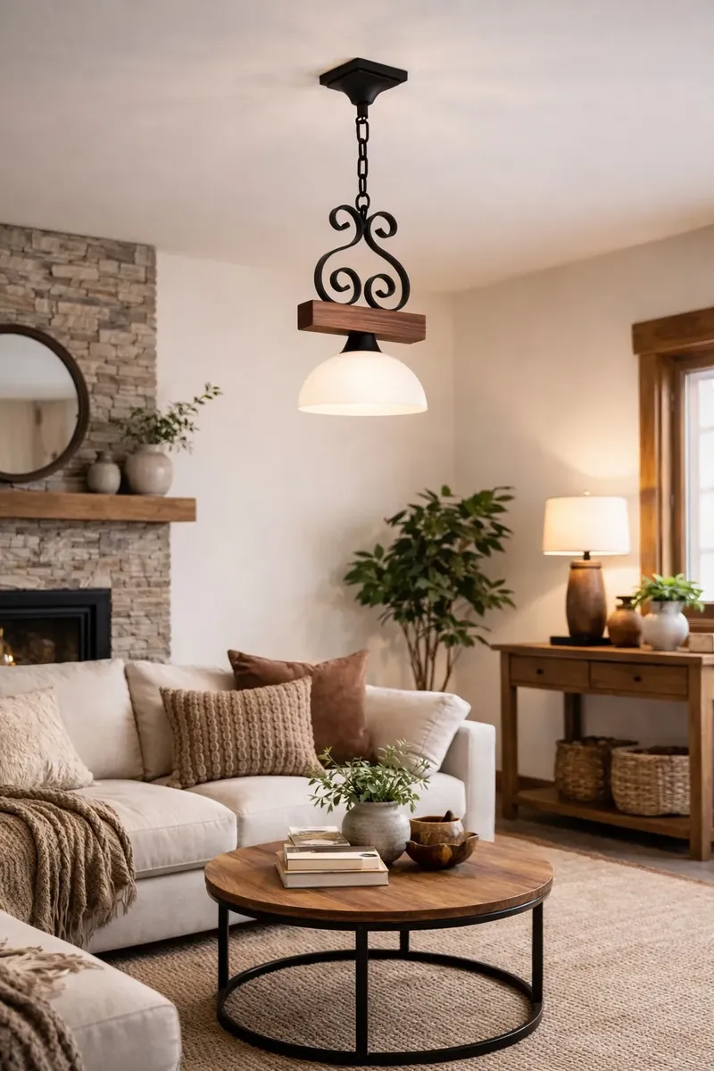 Este formato de lámpara colgante tiene capacidad para un foco LED, que proporciona una iluminación cálida y eficiente. Los materiales de hierro y madera aseguran durabilidad y un acabado que resalta la belleza de lo artesanal. Su instalación en el techo permite una distribución óptima de la luz en el ambiente.
