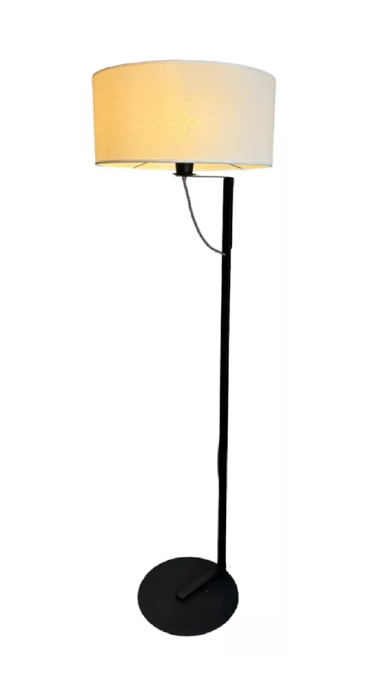 Luminaria Lampara De Pie Industrial Negro Pantalla Tela Blanco