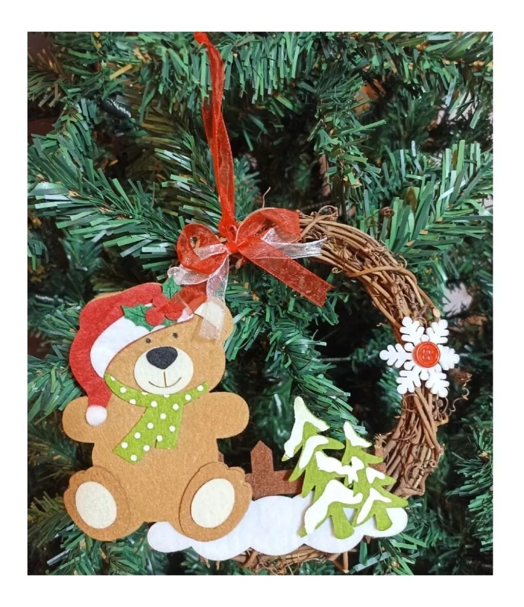 Mini Corona Navidadeña Bambu Chirimbolo Puerta Arbol Navidad Oso