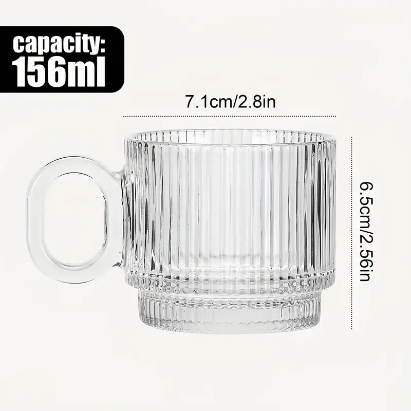Pack 6 Taza Vaso Vidrio Para Té Café Con Asa 156ml Acanalado