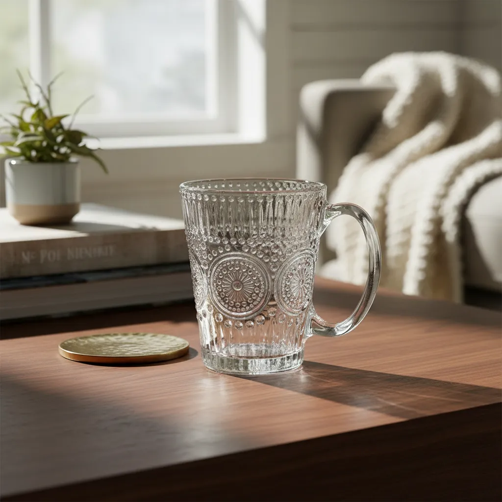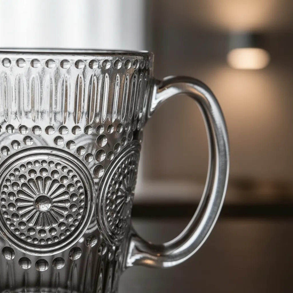 u material de cristal vidrio no solo es atractivo, sino que también es apto para lavavajillas y microondas, facilitando su uso diario y limpieza. La forma con asa proporciona un agarre cómodo, permitiéndote disfrutar de cada sorbo sin preocupaciones.