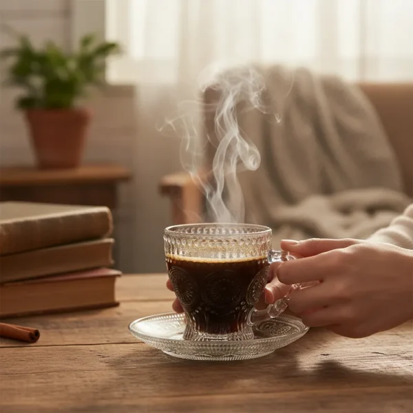 Descubre el Pack de 6 Tazas de vidrio para té y café con asa, un complemento ideal para tus momentos de relax. Fabricadas por Trend & Home, estas tazas de la línea Labrados combinan elegancia y funcionalidad, perfectas para disfrutar de tus bebidas calientes favoritas.