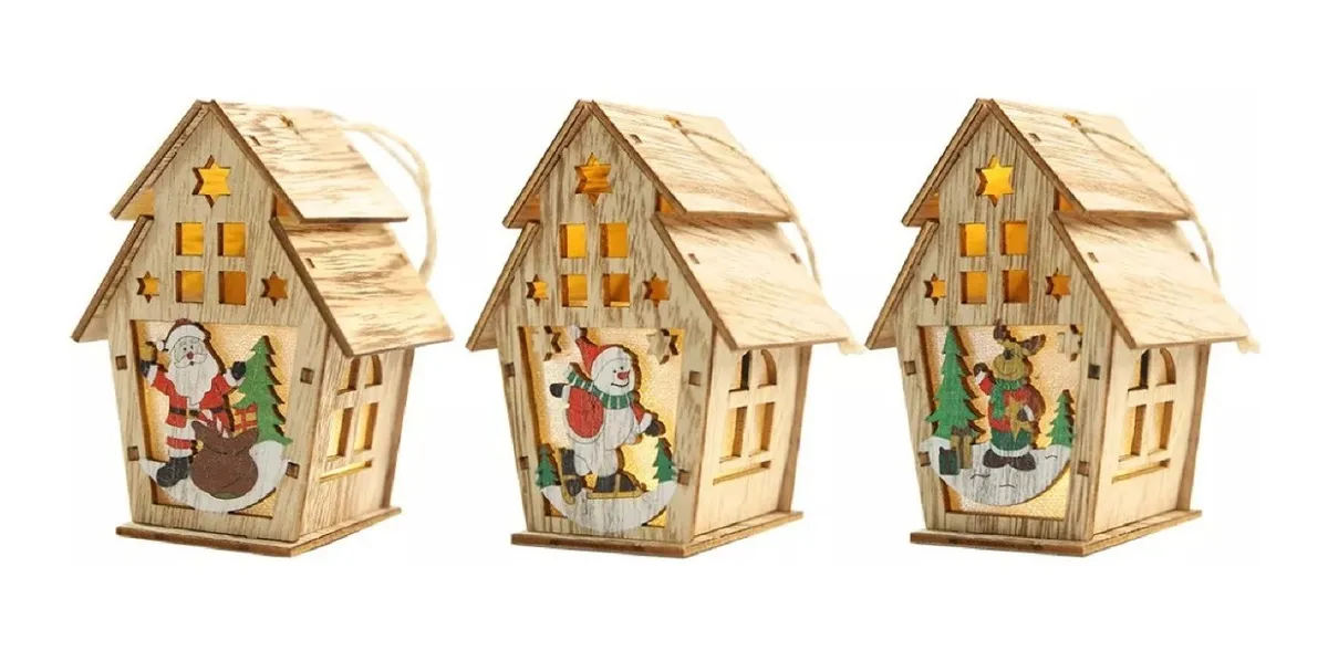Pack De 2 Casas Led Chirimbolo Adorno Navidad Madera Bambu