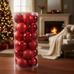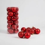 Set 24 Chirimbolo Adorno Navidad 6cm Glitter Brillante Opaco Rojo