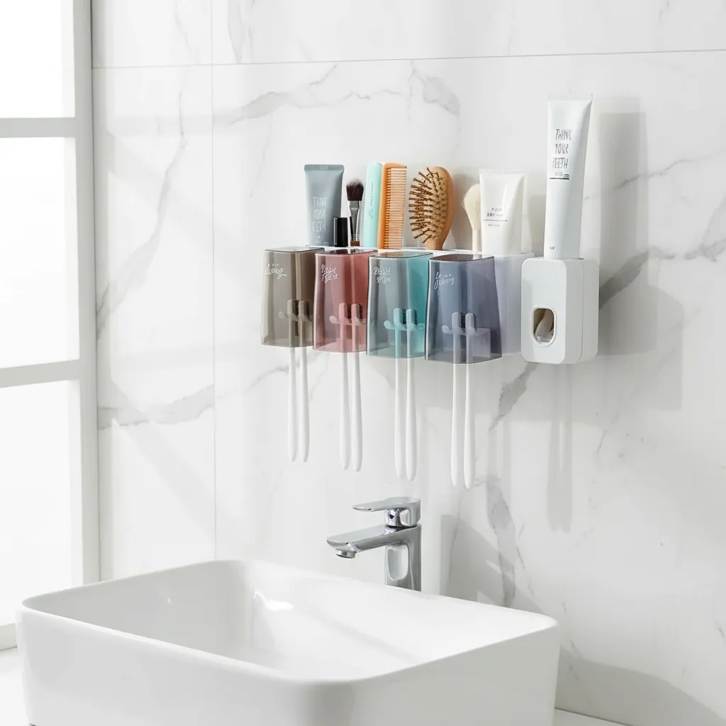 Dispensador Pasta Dental Porta Cepillo 4 Vasos Antibacterial