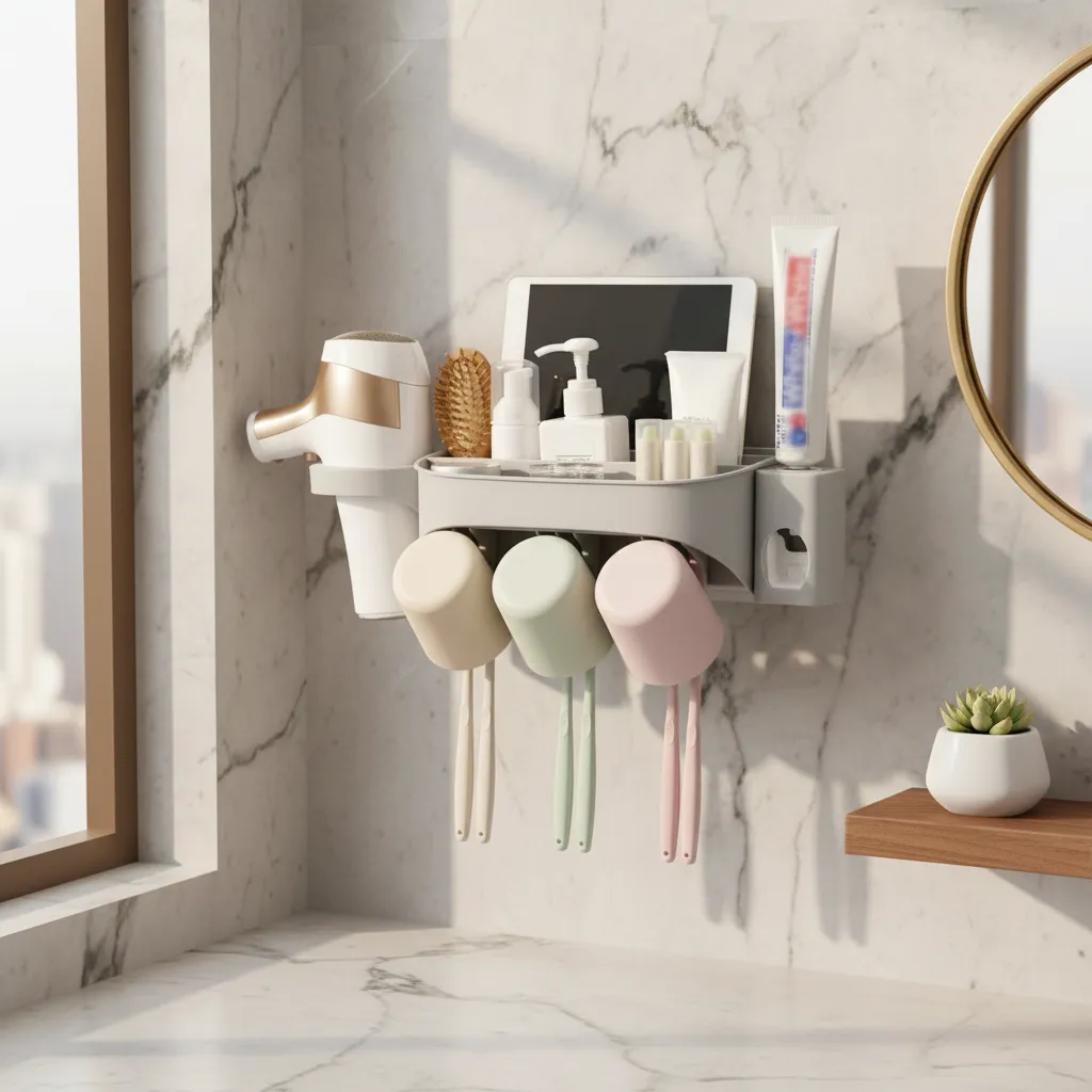 Dispensador Pasta Dental Porta Cepillo 4 Vasos Antibacterial